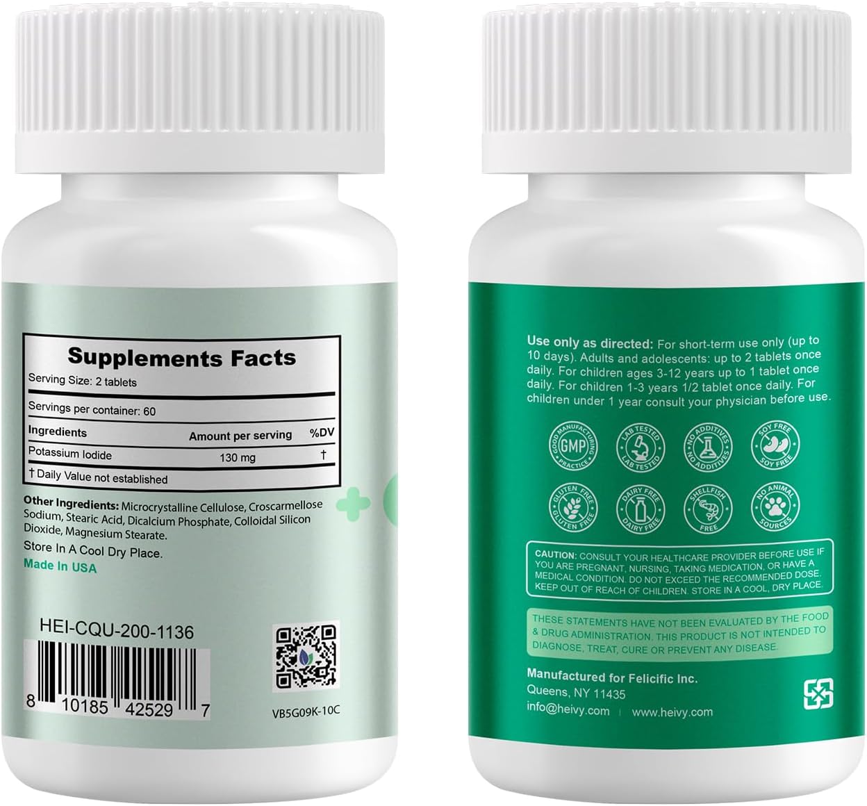 Lab Tested for Quality: Heivy Potassium Iodide Tablets are 3rd-party lab tested for heavy metals, potency, and purity. Manufactured in the USA under strict quality standards.