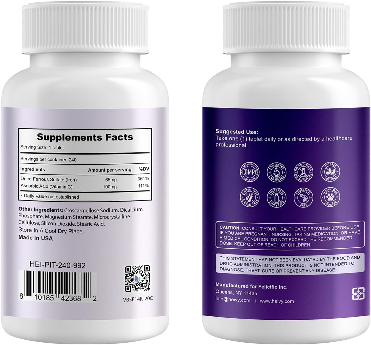 Heivy Ferrous Sulfate Iron 325 mg with Vitamin C | 240 Tablets